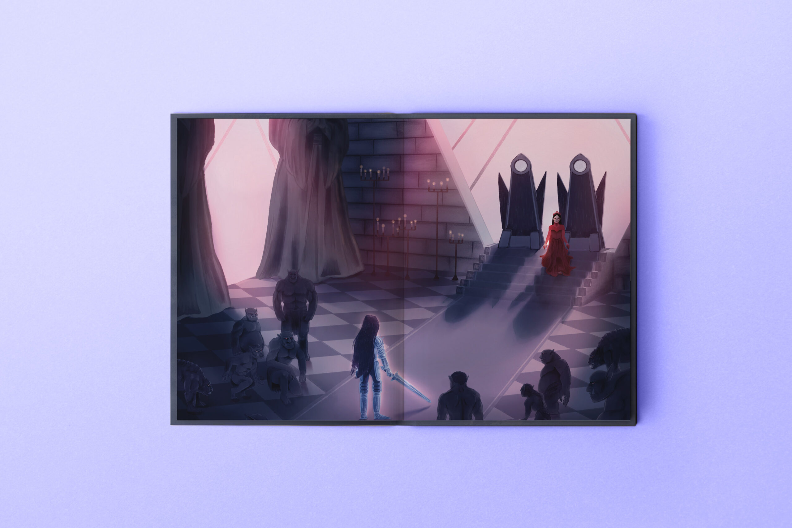 Overview: Illustration and design for a hardcover fantasy novel for Upper Young Adult (16-25 aprox). Moody, immersive, dramatic visuals that reflect the novel’s dark fantasy tone.