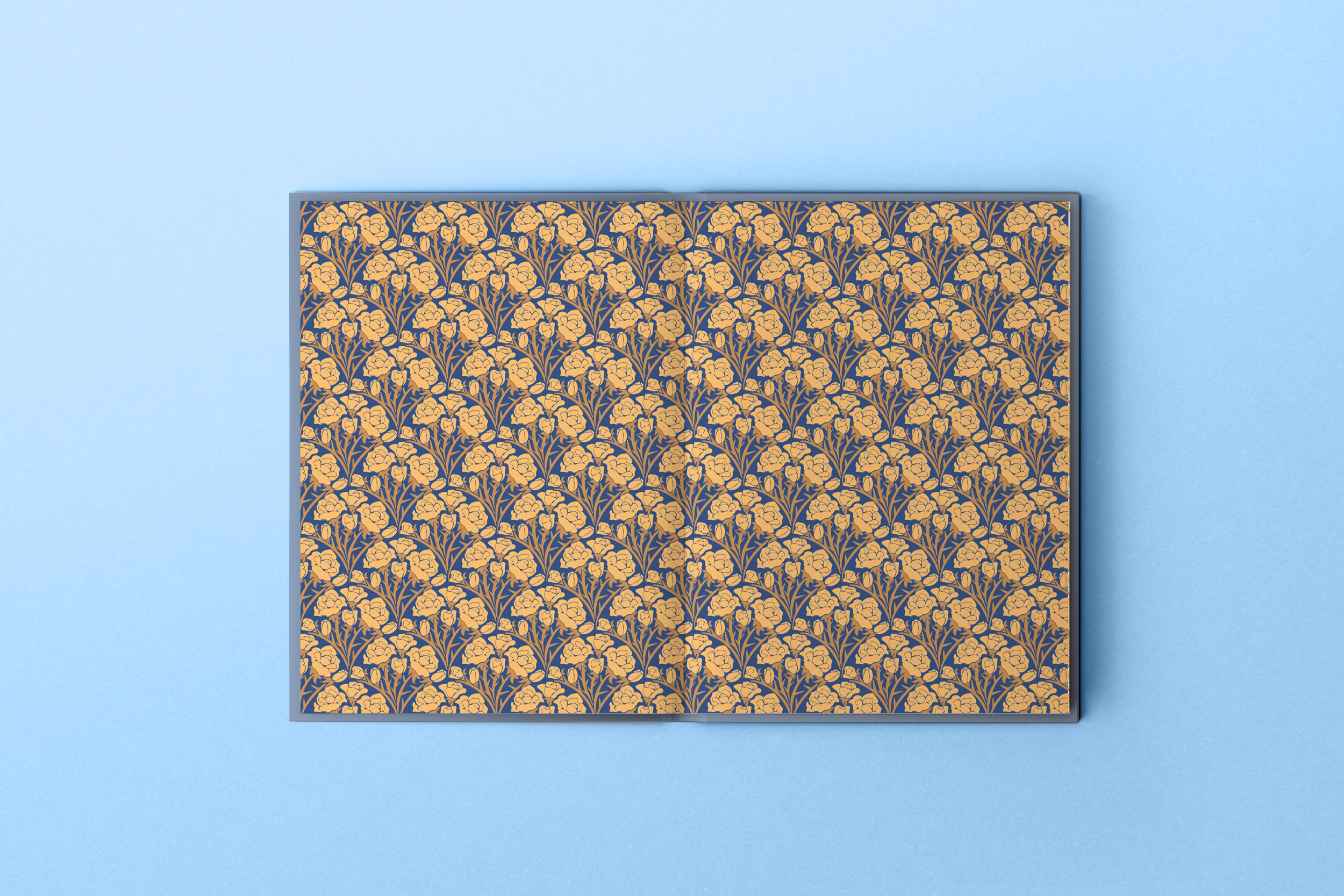 - Illustrated endpapers, floral motif, repetitive pattern to give a classic look.