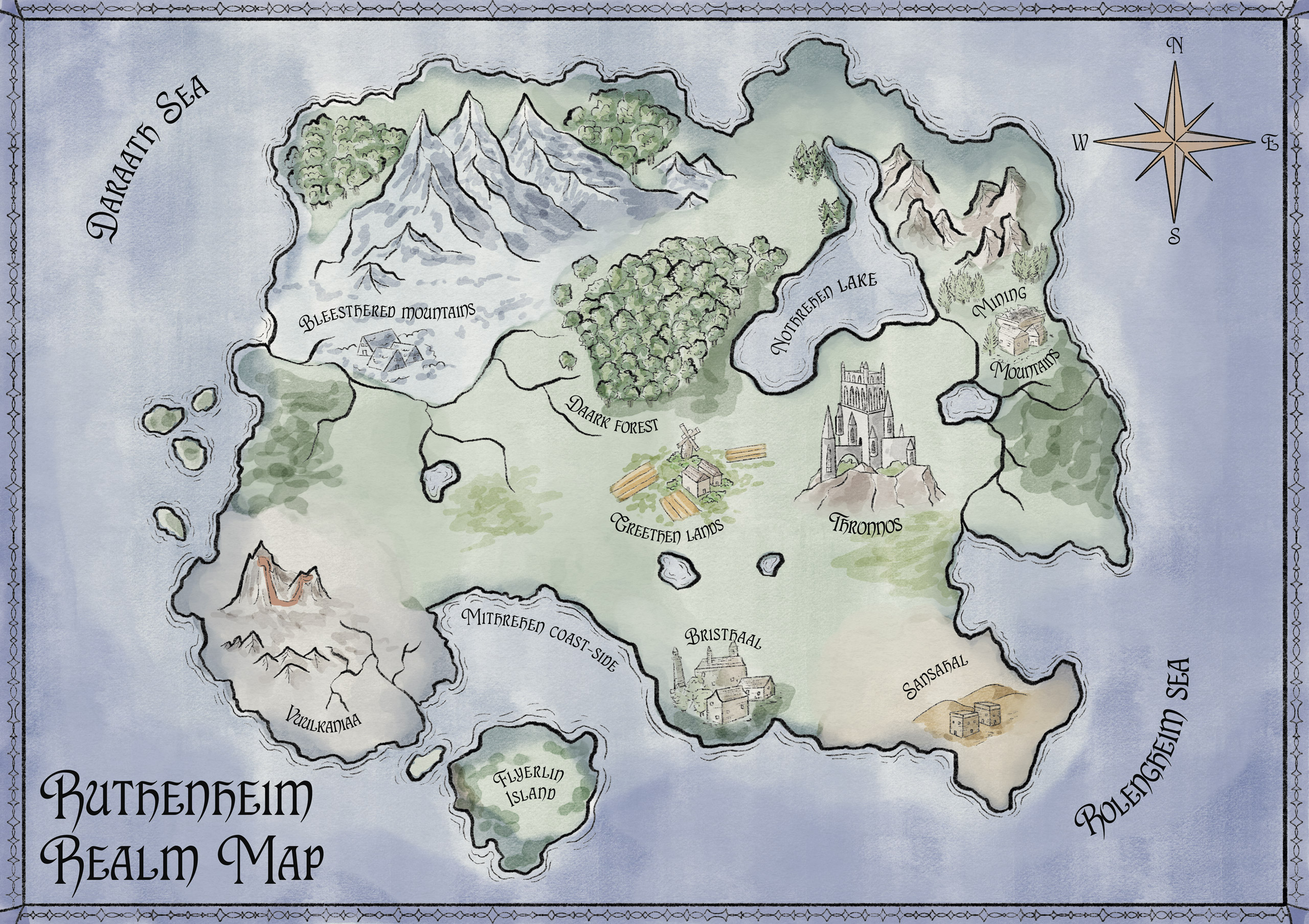- Illustrated endpapers with 2 landscapes, one with the heroine and one with the villainess.