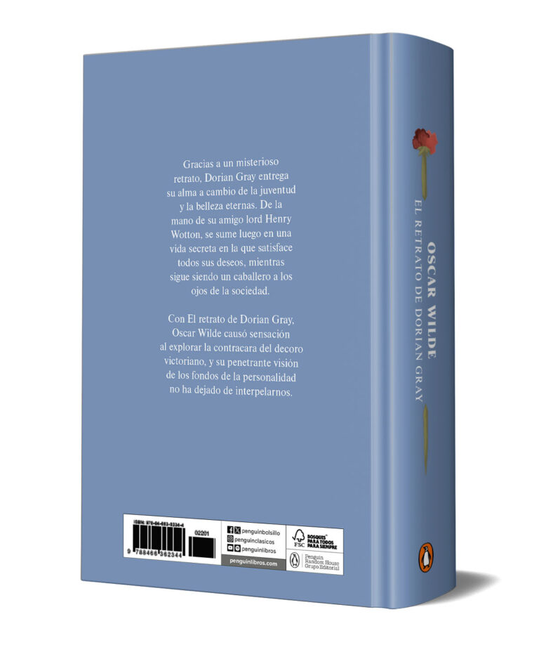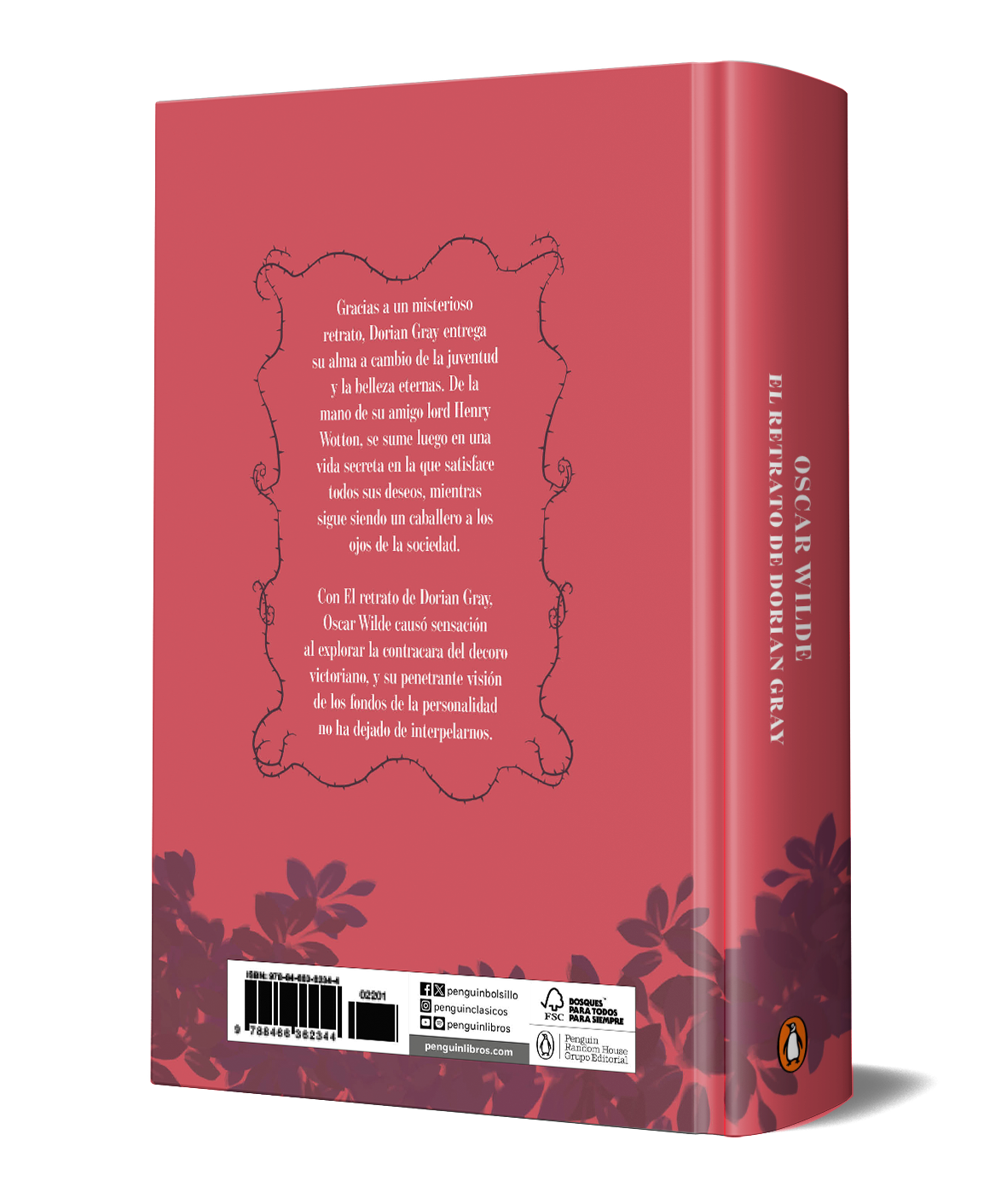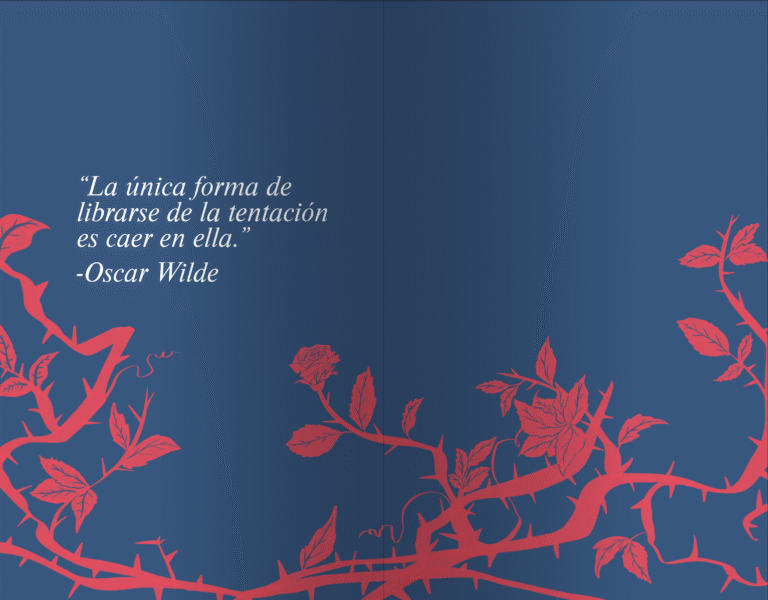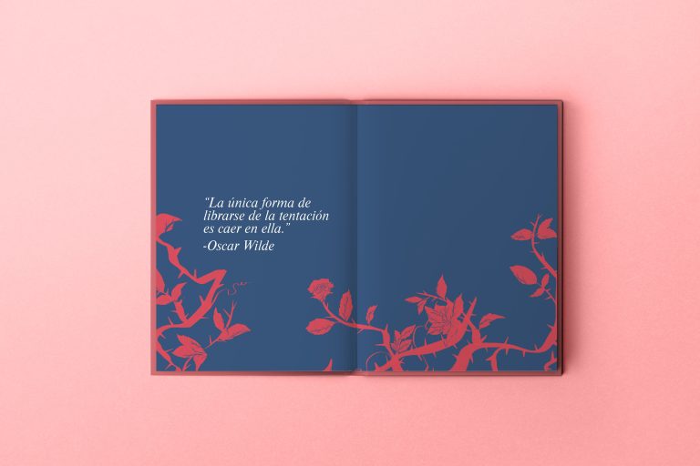 - Illustrated endpapers, floral motif and a quote from the book: “La única forma de librarse de la tentación es caer en ella.”